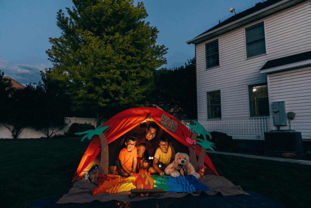 Camping in your backyard or a nearby campsite.